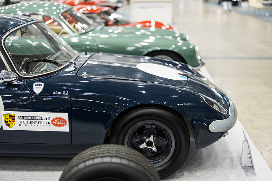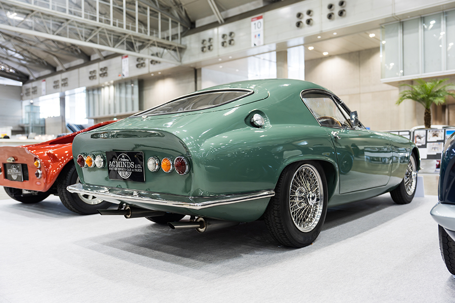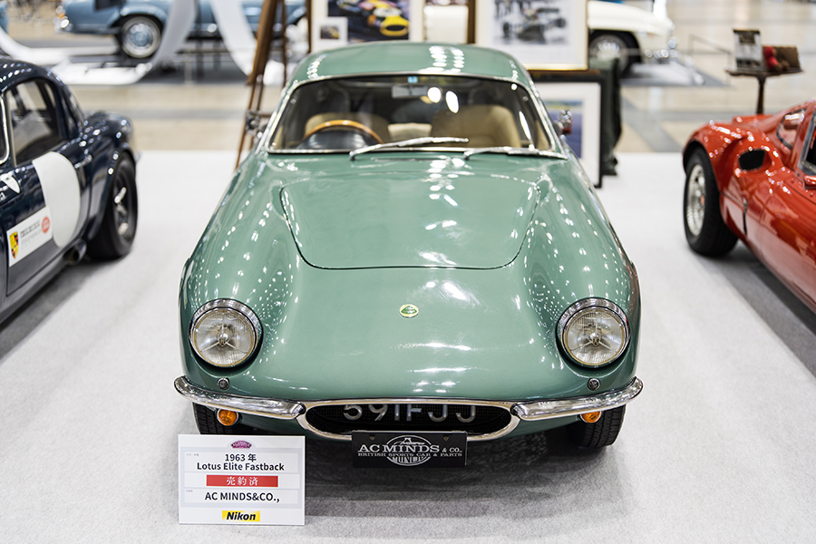 注目はなんといってもこちら。「1963y LOTUS Elite Fastback」オリジナルはノッチバックスタイルのロータス・エリートをベースに、流線型に製作された世界で1台だけのファストバックスタイルだ。後にロータス本社も認めるエリート専門スペシャルショップを立ち上げる事となるトニー・ベイツ氏によって製作されたこの個体。英国のロータスコレクターの元で長年保管されていたが、2000年代に日本に持ち込まれて以来、AC MINDSにてメインテナンスを続けられている希少性の高い1台だ。