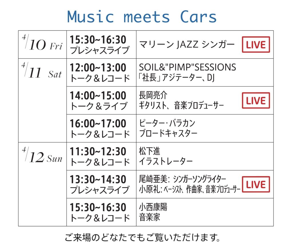 音楽プログラム『MUSIC MEETS CARS』タイムテーブル公開